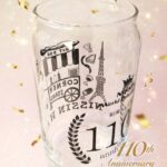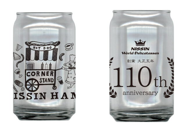 ▲110周年の刻印とオリジナルイラストがスタイリッシュに描かれた特製ビールグラス ¥900(税込)